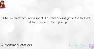 Like the marathon life can sometimes be difficult challenging and present obstacles however if you believe in your dreams and never ever give up things will turn out for the best. Its a marathon My Dad And about a million other people to the point where I cant even find who originally uttered this inspiration. Life is like a marathon not a sprint. Its about taking a bigger-picture approach - Ivanka Trump. I modified it using ComicLife. Life is a marathon not a sprint. Phil McGraw Just put one foot in front of the other. Nipsey Hussle quotes that will inspire you to live a purposeful life. If you try to take on too much at one time you will burn out and fail completely.